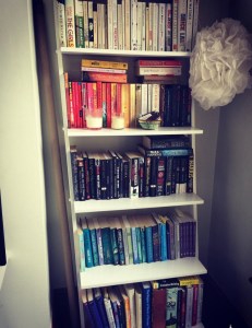 I bought some proper bookshelves – the type that lean against the wall – and promptly filled one, then two, now three. I have books neatly piled on top of the wardrobe in the spare room, and they fill the space up to the ceiling perfectly. My bedside table has a small revolving selection, and I’ve managed to create a small tower on my dressing table. The guest bathroom is also a safe harbour for my books, and great for my guests when they’re stuck for something to read. Usually on the loo. But we won’t go there…