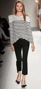 Coco Chanel is credited with being the first to make a top worn by working sailors, fashionable, using it in her collection in 1917. It has relentlessly popped up on the catwalk, decade after decade ever since. It has never been out of fashion, and copied for the masses by the millions.